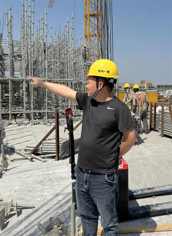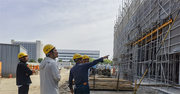 本次竞赛的特点是紧密结合日常的安全管理工作,用更细更实的方式呈现管理的结果。第一站选在公司对面的东风农机工地,第九项目部周志塔经理说,该项目体量不大,但工期紧,高大模板支撑部位多、面积大,作业难度大;目前框架结构部分三层结平承重架搭设完成1/2,钢结构部分完成高强地脚螺栓的预埋工作,等待钢结构进场安装。